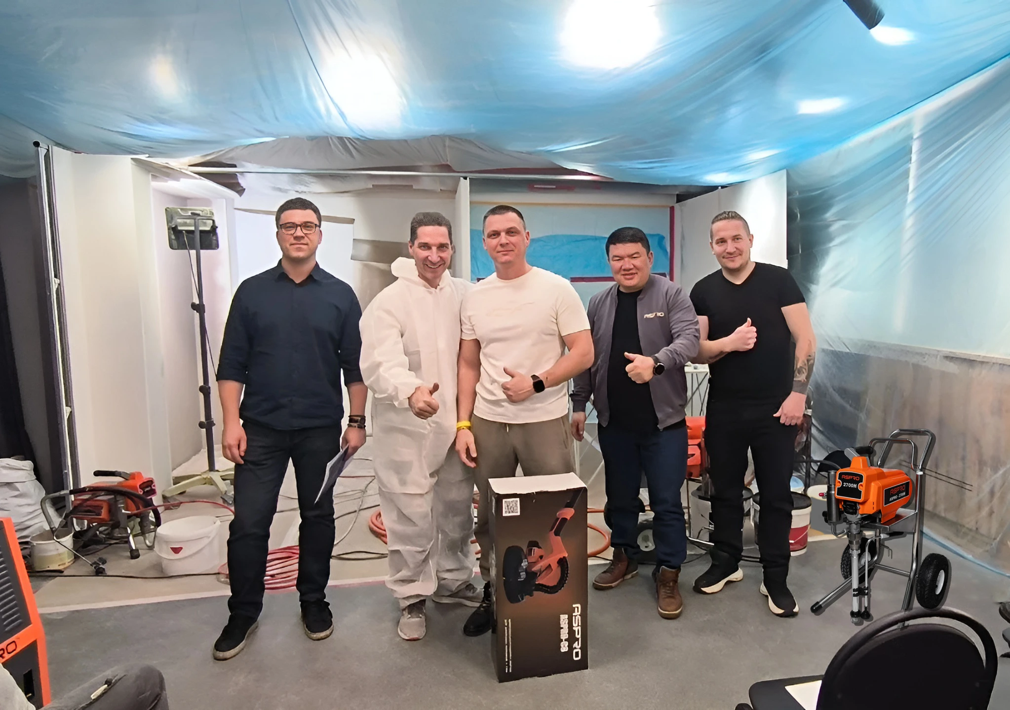 Практический блок мероприятия включал в себя обширную демонстрационную программу. Участники получили возможность провести тест-драйв профессионального оборудования ASPRO. Особое внимание было уделено работе с безвоздушными окрасочными аппаратами моделей ASPRO 2700 и ASPRO 9000, технические процессы были представлены в полном объеме: от подготовки поверхности до финишной обработки. Участники освоили техники шлифования с использованием шлифмашин ASPRO-D1 и ASPRO-C8, а также работу с профессиональным строительным пылесосом ASPRO-VC2