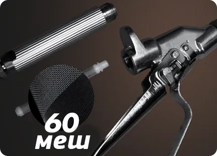 Встроенный фильтр нового поколения 60 меш - предотвращает засорение сопла, легко очищается и имеет долгий срок службы.
