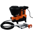 Краскораспылитель со встроенным бункером 1,5 литра. Работает от сети 220 В. Простой разбор и чистка после использования.