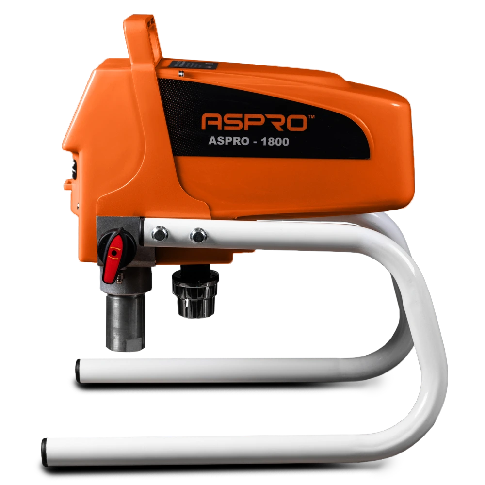 С его помощью вы можете красить как большие поверхности так и труднодоступные места без потери качества. В комплекте удлинитель на краскораспылитель, который незаменим для покраски потолков. Качественная сборка и надежность каждой детали оценит каждый маляр. Долговечность, простота, надежность и доступность краскораспылителя ASPRO 1800 делает его народным любимцем.