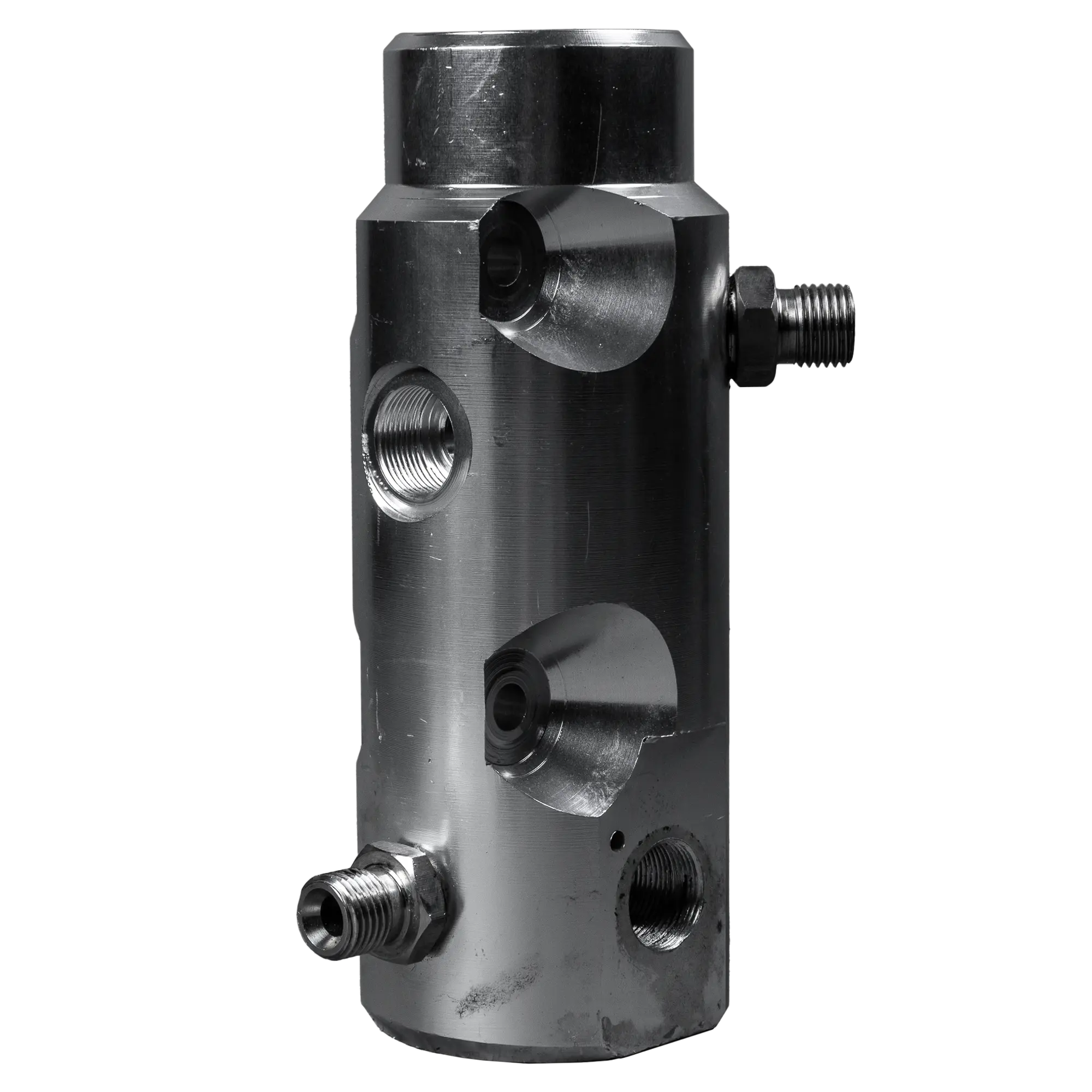 Коллектор является важным элементом поршневого окрасочного аппарата, отвечающей за распределение краски по различным каналам и обеспечивающей правильную работу всей системы окраски. В коллектор устанавливается фильтр тонкой очистки, дренажный кран с дренажной линией, датчик давления, штуцера подключения шлангов высокого давления. Кроме того, емкость коллектора, используется в качестве ресивера для снижения колебаний давления ЛКМ. Необходимо тщательно промывать коллектор после окончания работы, в том числе и вручную.