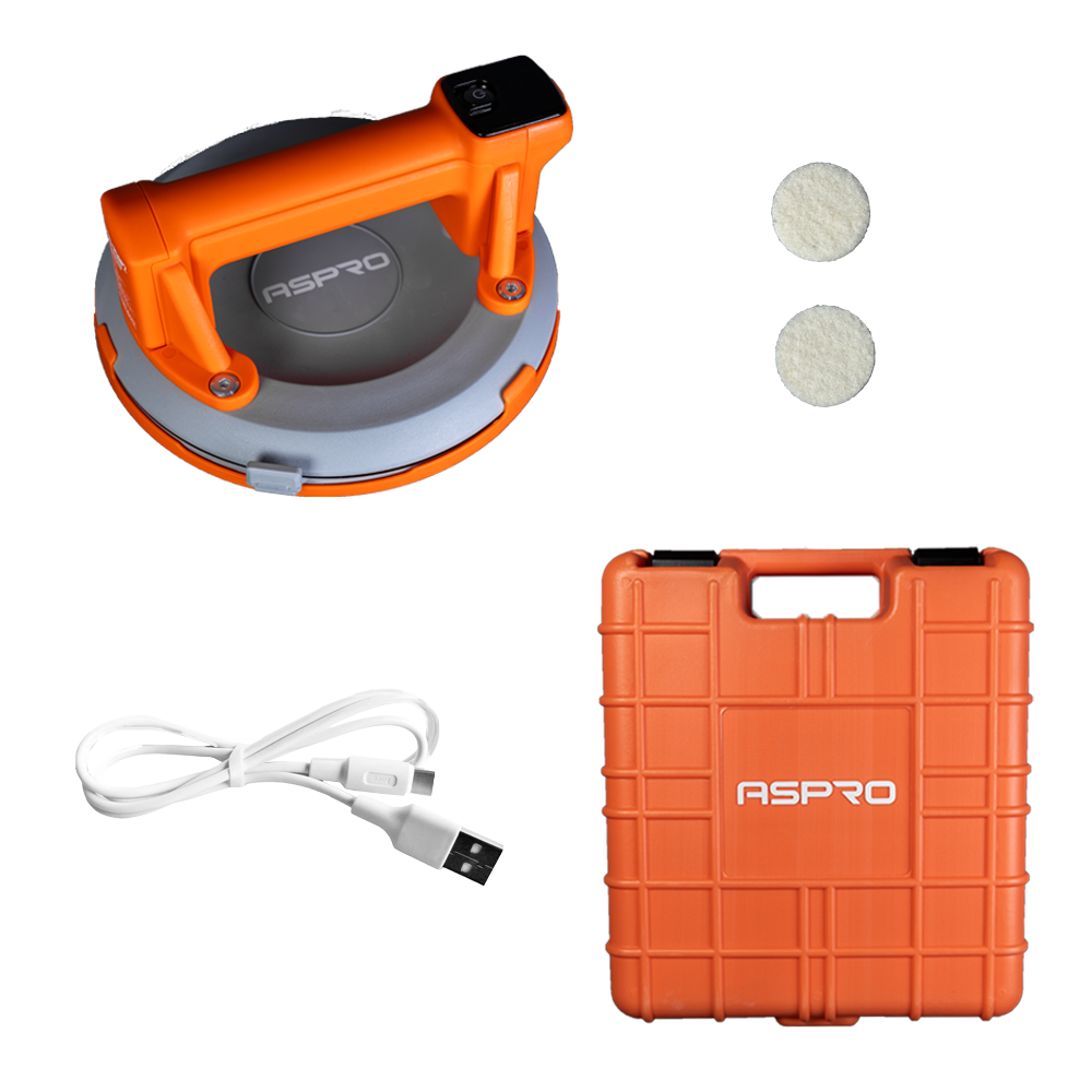 Вакуумная присоска с диаметром 200 мм для плитки. Оснащена автоматическим электронасосом. Питание от аккумулятора 2 А·ч. Провод для заряда в комплекте