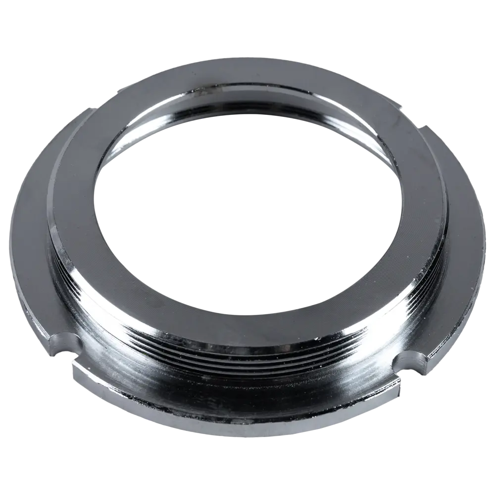 Фиксирующая гайка обеспечивает надежное крепление различных компонентов оборудования. Изготовленная из прочного материала, она устойчива к коррозии и износу, что гарантирует долговечность и стабильность соединений.